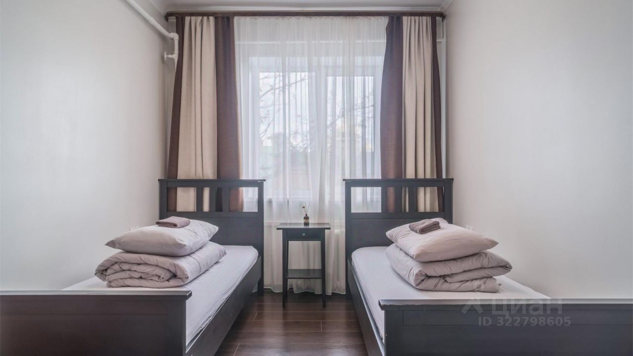 В номере: две односпальная кровати, гардероб, вешалка для одежды, душ на этаже, общая ванная комната и туалет на этаже, банное полотенце.