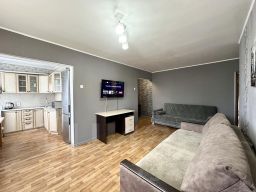 Квартира оборудована всем необходимым для комфортного проживания: спальные места, телевизор, оборудованная кухонная зона, ванная комната и туалет.