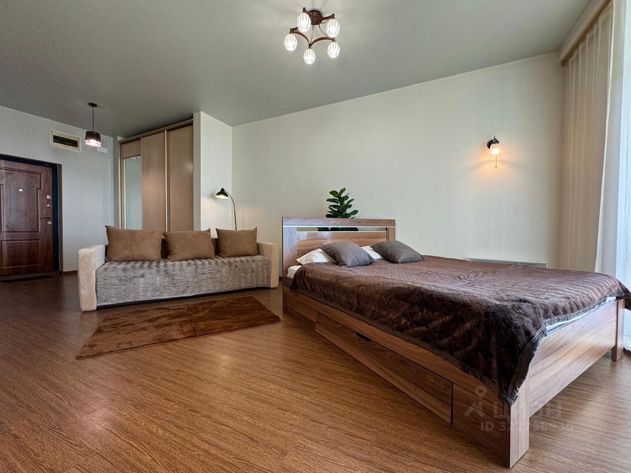 Апартаменты студия для 4 гостей. Спальные места: диван и двуспальная кровать. В квартире есть всё необходимое для комфортного проживания. Посуда для приготовление вкусной еды. Комплект посуды, столовых приборов. Чистое постельное бельё, полотенца для тела и лица. Принадлежности гигиены, шампунь, зубная щётка с пастой. Интернет и ТВ