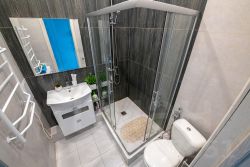 -Полностью укомплектованная кухня  индукционная плита, чайник, микроволновая печь, холодильник, духовой шкаф, посуда и столовые приборы