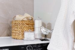 Бесключевой доступ. Имеется стиральная и сушильная машина, микроволновка, духовка, кофемашина, чайник, тостер, фен, утюг, большой телевизор. Уютный открытый балкон с мебелью, вид на Золотой мост и море.