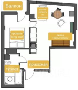 Для комфортного проживания гостей апартаменты оборудованы всем необходимым: 2-спальная кровать, раскладной 2-спальный диван. На балконе расположена кушетка для отдыха, стол и 2 кресла. Имеются все ванно-косметические принадлежности, полотенца, белье, халаты.