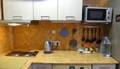 Квартира оснащена всем необходимым для комфортного проживания. В зоне кухни установлен холодильник, электроплита, чайник, микроволновка. Есть стиральная машина-автомат.