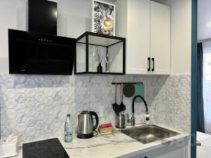 Апартаменты студия с балконом для 2 гостей. Спальные места: двуспальная кровать. К услугам гостей кондиционер; беспроводной интернет и телевизор с плоским экраном; стиральная машина; фен; утюг и гладильная доска. Кухня со всем необходимым для приготовления пищи. Предоставляется стиральный порошок, шампунь, т.бумага, жидкое мыло, ср.для мытья посуды.