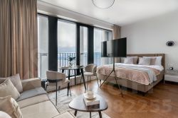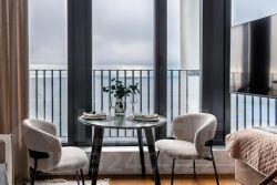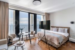 Уютные апартаменты в нежных тонах с панорамным видом на море.