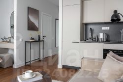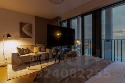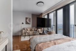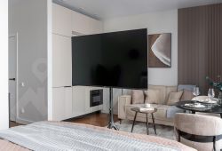 Просторная студия с зонированием на спальную и гостевую зоны.
