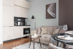Погрузитесь в атмосферу спокойствия и гармонии в наших светлых апартаментах, оформленных в мягких пастельных оттенках. Здесь каждый элемент создан для того, чтобы вы чувствовали себя как в курортном отеле, но с теплом домашнего уюта.