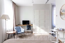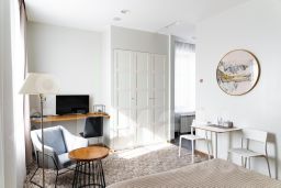 А ещё в распоряжении гостей индивидуальная регистрация заезда и отъезда. Ресепшен работает с 09:00 -18:00 . Сотрудники апартаментов поддержат беседу на английском и русском. Оснащение зависит от выбранной категории номера.