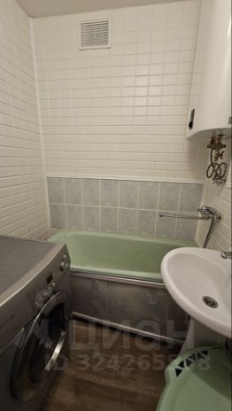 В ванной комнате: титан, электрический полотенцесушитель, стиральная машина, корзина для белья, шкафчик с зеркалом.