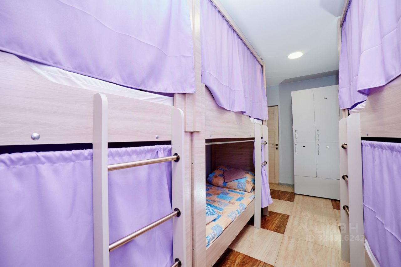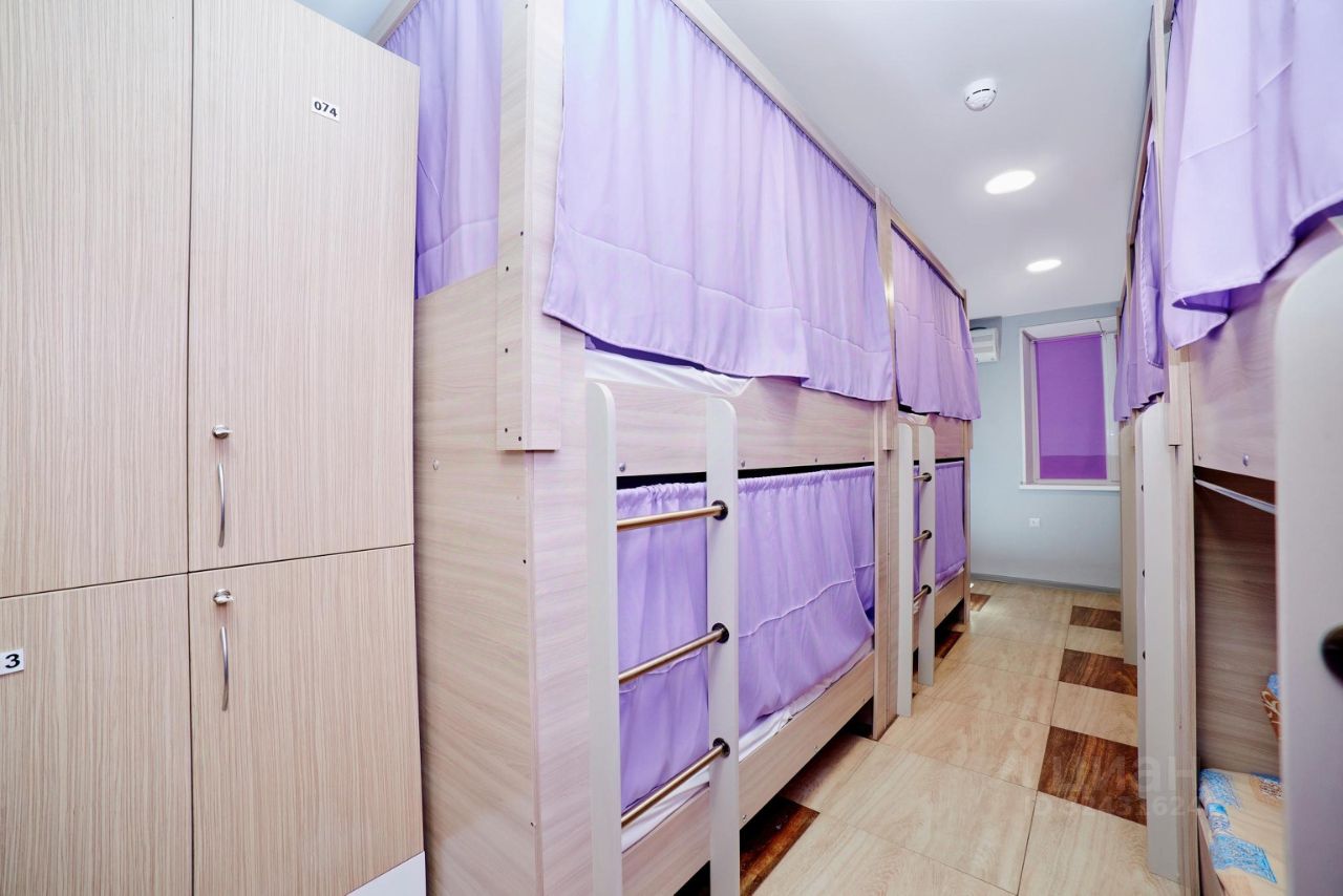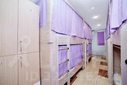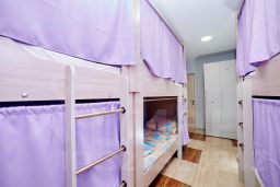 Комфортный 10-ти местный мужской номер с двухъярусными кроватями и локерами для личных вещей.