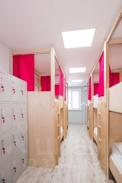 Комфортный 10-ти местный женский номер с двухъярусными кроватями и локерами для личных вещей.