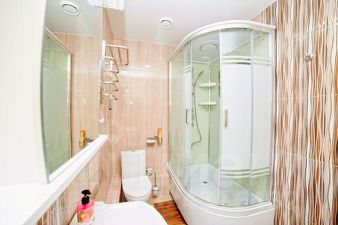 Двухместный номер с большой кроватью и своей ванной комнатой. В номере есть кондиционер, телевизор, отопление, чайник, холодильник. Для гостей номера доступна общая кухня со всеми пренадлежностями для приготовления еды.