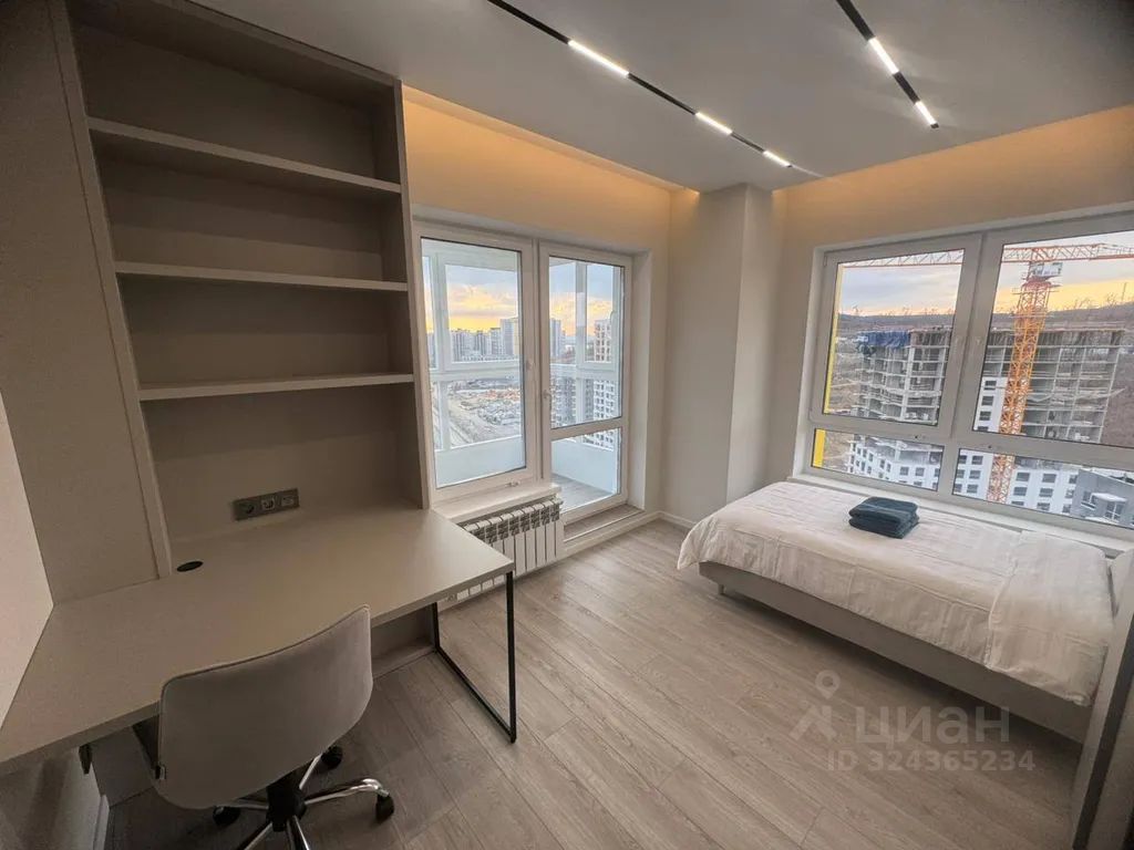 Во второй спальне — полноценная рабочая зона: удобный стол, розетки, спокойное освещение.