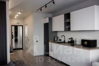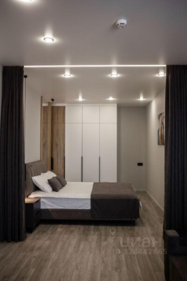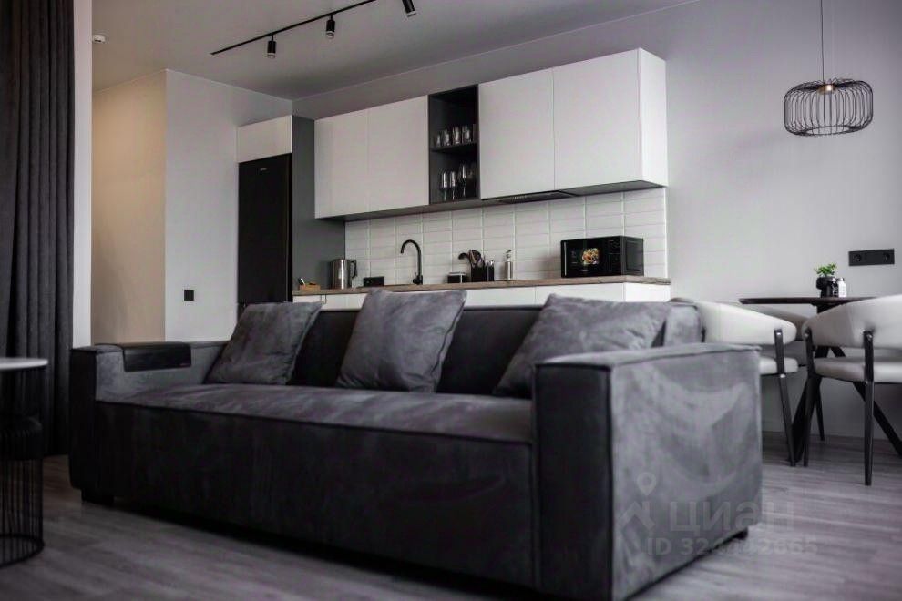 Просторный номер - студия площадью 50 кв м расположен на первом этаже. Номер выполнен в современном дизайнерском стиле. Для комфортного пребывания гостей номер зонирован на кухонную зону, зону отдыха и спальню. Мы продумали все до мелочей для вашего комфортного пребывания. В кухонной зоне расположена полноценная кухня с множеством шкафов, с микроволновой печью, большим холодильником, варочной панелью, чайником и обеденной зоной. Кухня полностью укомплектована посудой для приготовления и принятия пищи. В зоне отдыха расположен большой диван (1 спальный), тв тумбочка, шкаф для вещей, плазменный телевизор. В спальной зоне 2х спальная кровать, большой шкаф для одежды. Ванная комната укомплектована всем необходимым: фен, халаты, полотенца, гигиенические принадлежности, тапочки. Для удобства гостей предлагаем бесплатный wi fi, smart tv и бесплатную парковку.
