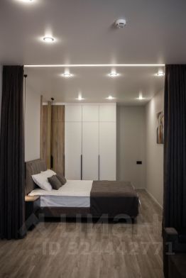 В спальной зоне 2х спальная кровать, большой шкаф для одежды.