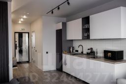 Просторный номер - студия площадью 50 кв м расположен на втором (4) и третьем (6) этажах. Номер выполнен в современном дизайнерском стиле. Из окна номера открывается шикарный вид на бухту Золотой рог и город. Особенно прекрасны ночные виды города. Для комфортного пребывания гостей номер зонирован на кухонную зону, зону отдыха и спальню. Мы продумали все до мелочей для вашего комфортного пребывания. В кухонной зоне расположена полноценная кухня с множеством шкафов, с микроволновой печью, большим холодильником, варочной панелью, чайником и обеденной зоной. Кухня полностью укомплектована посудой для приготовления и принятия пищи. В зоне отдыха расположен большой диван (1 спальный), тв тумбочка, шкаф для вещей, плазменный телевизор.