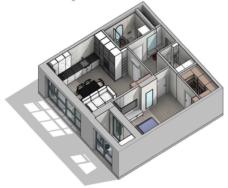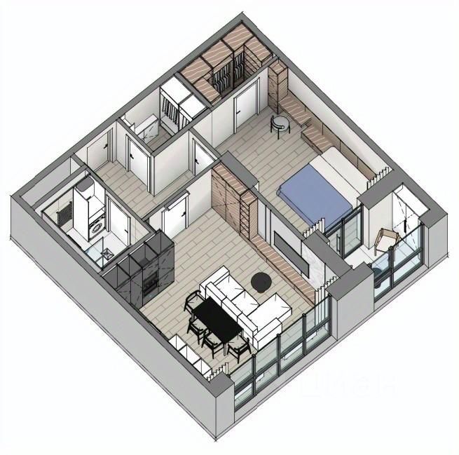 В квартире оборудованы зоны для хранения технического инвентаря и сушки белья.
