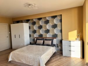 Квартира евро-2комн: просторная кухня-гостиная и большая отдельная спальная комната, помещения изолированы друг от друга.