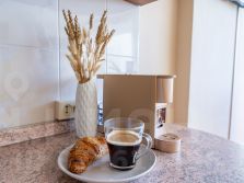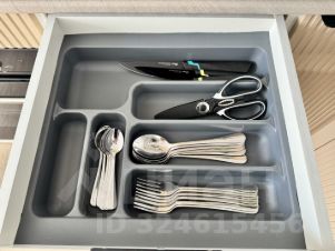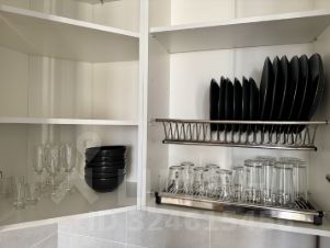 полное кухонное оснащение: посуда, фильтр для воды, чайник, кофемашина, микроволновая печь, холодильник, варочная панель, духовой шкаф, вытяжка