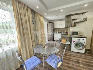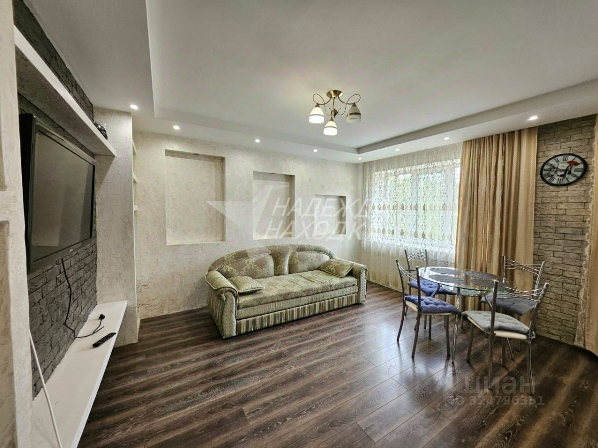 Диван 2шт, Двуспальная кровать, Шкаф-купе, Кухонный гарнитур, Обеденный стол, Стулья, Гладильная доска, Пуфик.