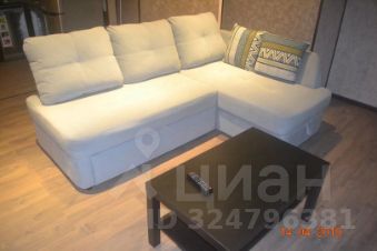 Гостинная и кухонная зона - угловой диван раскладывающийся в спальное место, журнальный столик Ikea, телевизор Samsung диагональ 50", тв тумба, обеденный стол, 4 стула