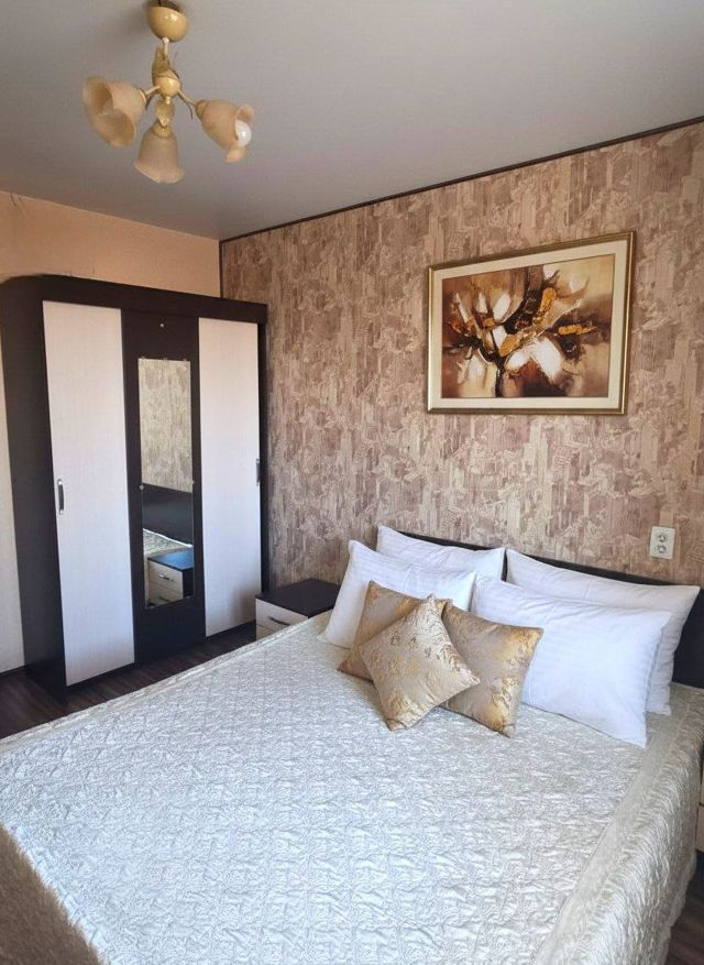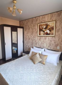 Квартира полностью меблирована и оснащена всей необходимой бытовой техникой и посудой. Для вашего удобства предоставляются постельное бельё, полотенца и предметы личной гигиены. Количество спальных мест — 2+2. В квартире имеется два балкона.