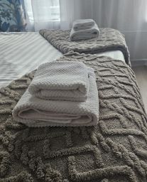 Квартира- три отдельных комнаты(номера) гостиничного типа с индивидуальными санузлами и общей кухней. В комнатах свежий ремонт. Кухня, необходимая посуда, столовые приборы, стиральная и сушильная машинки, чайник, свч печь, холодильник, гладильная доска, утюг, фен, кондиционер, телевизор, шторы-блэкаут, белоснежное постельное бельё и полотенце. Три уютные комнаты не связаны между собой позволят на отдыхе проживать в одной квартире с друзьями или родными людьми при этом в разных комнатах.