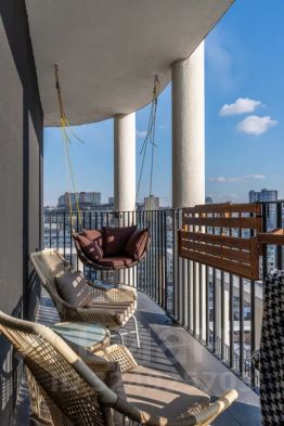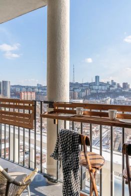 Терасса оборудована мебелью для отдыха и расположена на южной стороне, что позволяет наслаждаться видами на город и море и ловить солнечное тепло даже в холодное время года.