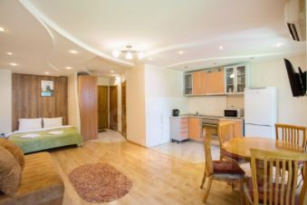 Просторная однокомнатная квартира оборудована всем необходимым для комфортного проживания. В ней есть большая кровать, раскладной диван, ванная комната, кондиционер и телевизор. Для приготовления еды предоставлены плита, духовка, холодильник, микроволновая печь и электрический чайник. В квартире также есть все необходимые мелочи: постельное белье.