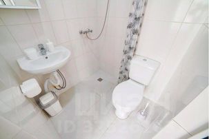 Санузел совмещённый: душ, чистое полотенце, средства гигиены, фен.
