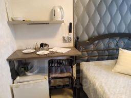 Одноместный стандартный номер с двуспальной кроватью. Номер оснащен ЖК-телевизором смарт, чайником, мини-холодильником, одноразовыми тапочками и косметикой, собственным санузлом с душевой кабиной.