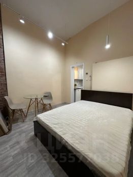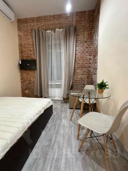 Умный лофт с разделёнными жилой комнатой и зоной для приготовления пищи. Площадь - 18 кв. метров.