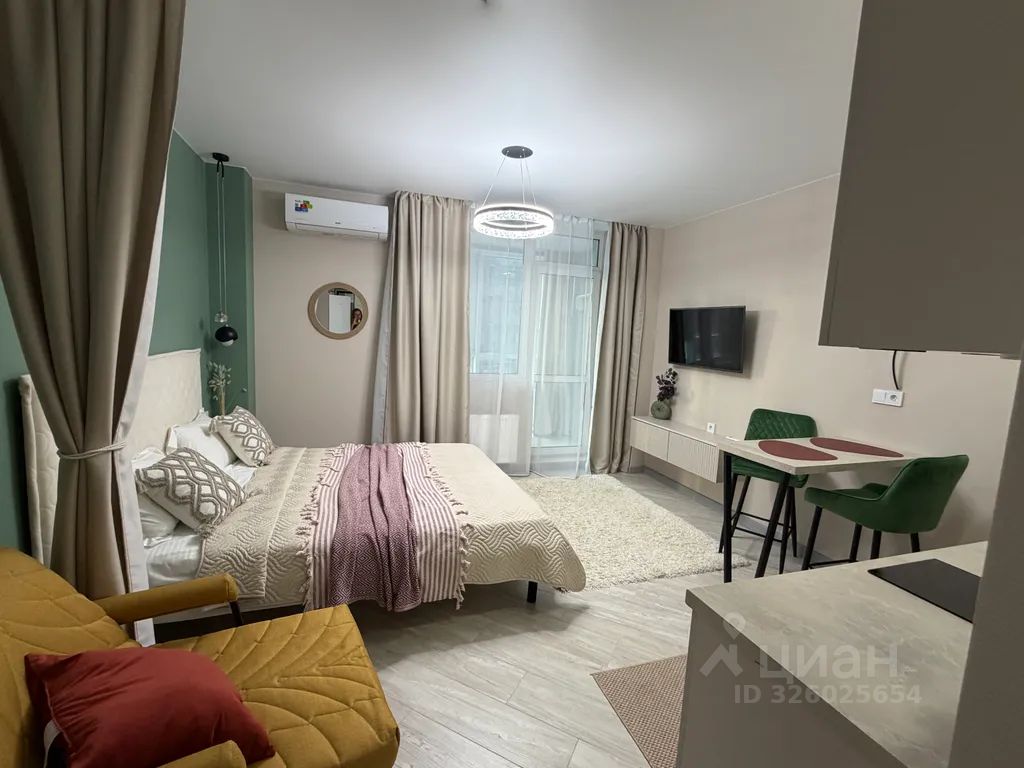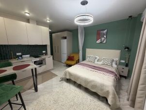 Сдается уютная красивая студия для проживания гостей (до 3 человек). В квартире сделан дизайнерский ремонт, все продумано до мелочей. Есть большой вместительный шкаф для хранения вещей . Удобная кровать с ортопедическим матрасом и раскладное кресло обеспечат Вам комфорт во время отдыха. Также есть необходимая техника и посуда для приготовления еды. Для наших гостей предусмотрены так же средства личной гигиены , моющие средства , полотенца, одноразовые тапочки . В момент заезда вас будут ждать чай, кофе и приятные комплименты. На застекленной лоджии есть теплый пол и освещение , что позволяет использовать ее как дополнительную зону отдыха. Дверь с умным замком и бесконтактное заселение позволяет заезжать в любое время суток. Дом комфорт класса ( дежурит консьерж). Парковочные места на территории дома - бесплатные (всегда есть свободные места). На первых этажах ЖК расположены магазины , аптеки, кафе. До море на автомобиле можно добраться за 15 мин по объездной трассе, которая расположена недалеко от дома .