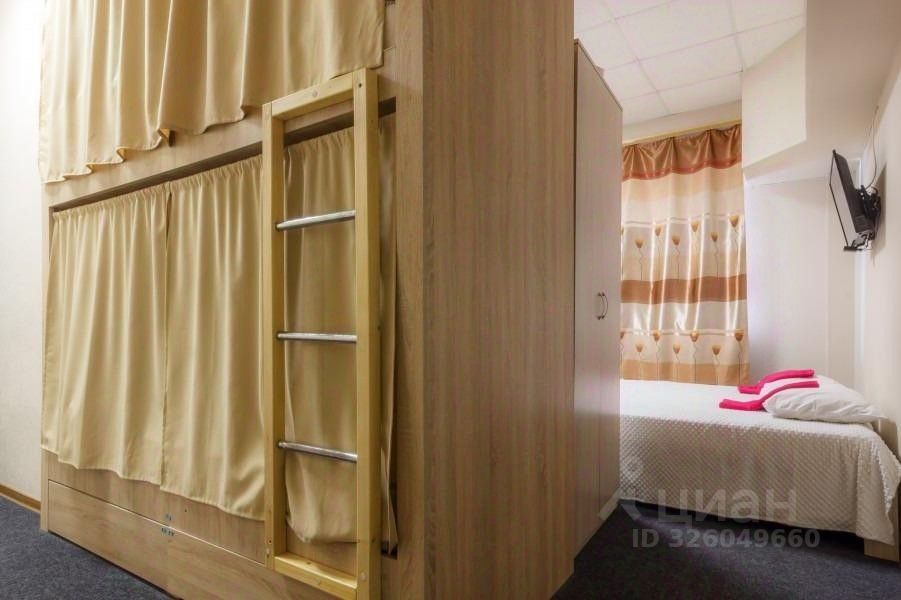 В номере имеется двухспальная кровать и двухъярусная кровать.
