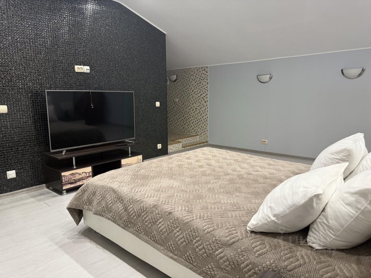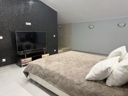 В номере: двуспальная кровать, 2 дивана, плазменный телевизор, шкаф, холодильник, чайник, посуда, санузел (ванная, унитаз, горячая, холодная вода), постельные и спальные принадлежности, ванные принадлежности.