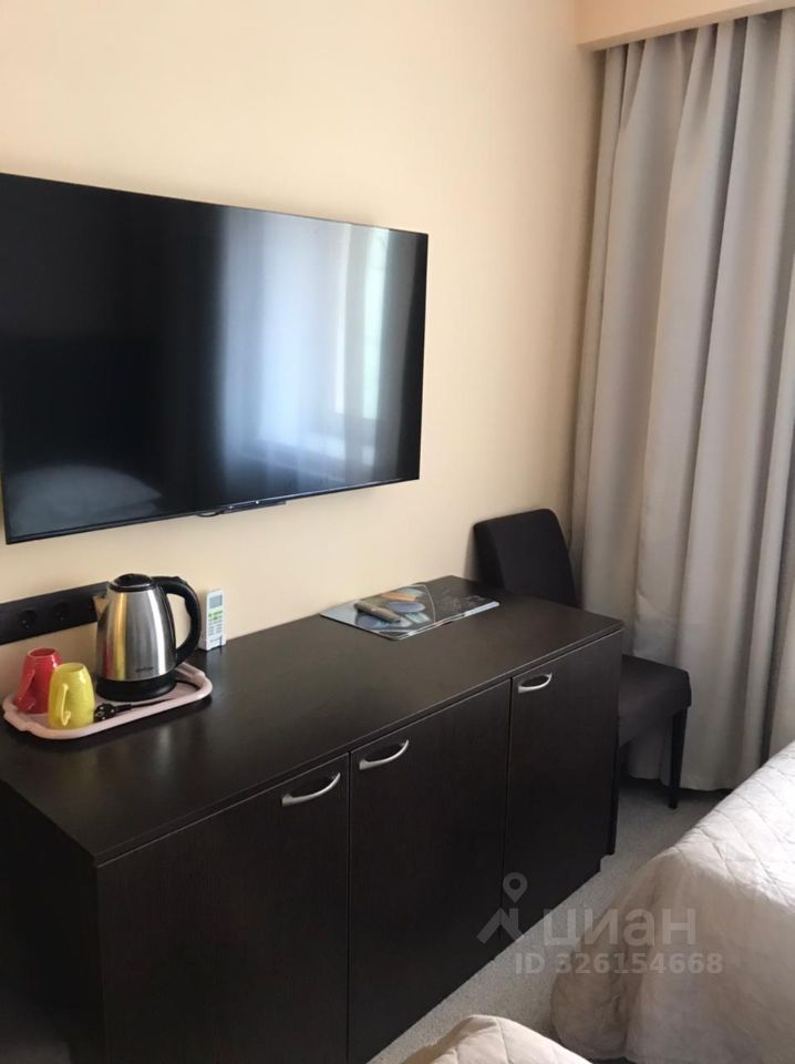 В номере: две односпальные кровати, телевизор, шкаф.