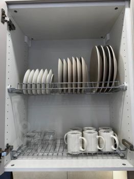 - Вся необходимая посуда на 6 персон (ложки, вилки, ножи, тарелки, кружки, бокалы, стаканы, сковородки, кастрюли)