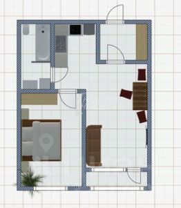 Двуспальная кровать, Диван, Кухонный гарнитур, Обеденный стол, Шкаф, Прикроватная тумба.