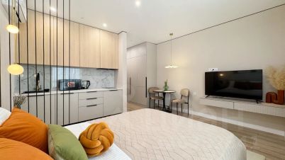Идеальный вариант для комфортного проживания — стильная студия с продуманным пространством и всеми необходимыми удобствами в современном районе с развитой инфраструктурой.