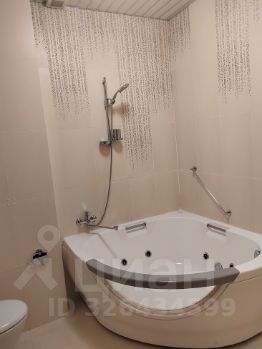 Большая двухспальная кровать в отдельной комнате, в гостиной диван, раскладывающийся в двухспальную кровать, 2 больших гардеробных, санузел совмещен, ванна с джакузи.