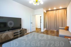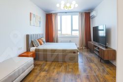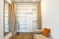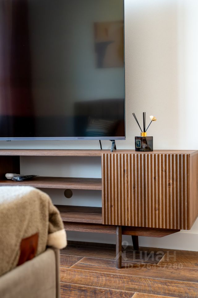 Также в комнате имеется большой ТВ диагональю 65 дюймов, кондиционер и огромное зеркало в полный рост у гардероба.