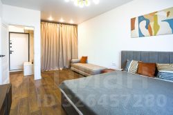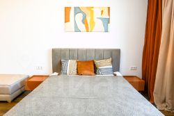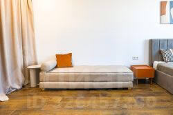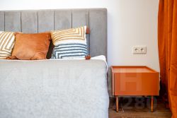 В квартире стоит большая двуспальная кровать, а также кушетка, которая раскладывается в полноценное спальное место.