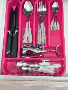 • Кухонные принадлежности: варочная панель, чайник, аэрогриль, тостер, микроволновка, большой холодильник, набор кастрюль и сковородок. А также вся необходимая посуда.