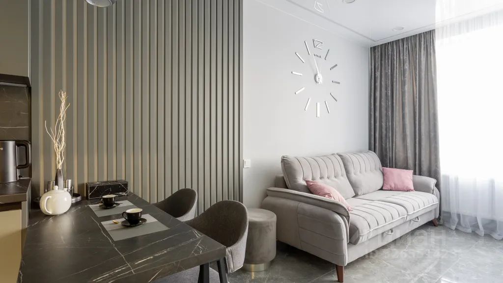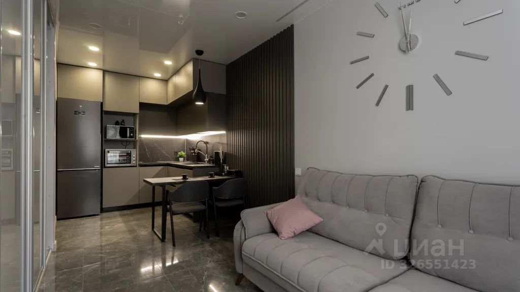 • Две комнаты: спальня и гостиная, совмещенная с кухней.