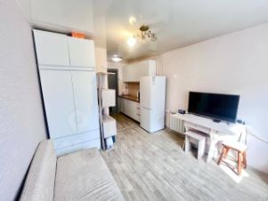 Сдается современная студия на шестом этаже девятиэтажного панельного дома, построенного в 1982 году. Общая площадь квартиры — 17,1 кв. м. Высота потолков составляет 2,64 метра.