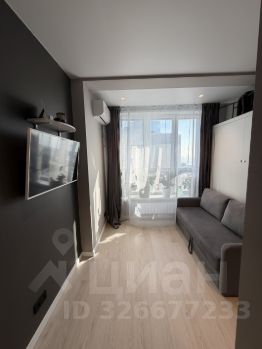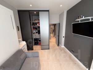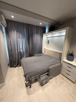 В спальне двуспальная шкаф-кровать "Askona". В сложенном виде освобождается много места. Гардеробная и мини-диванчик.