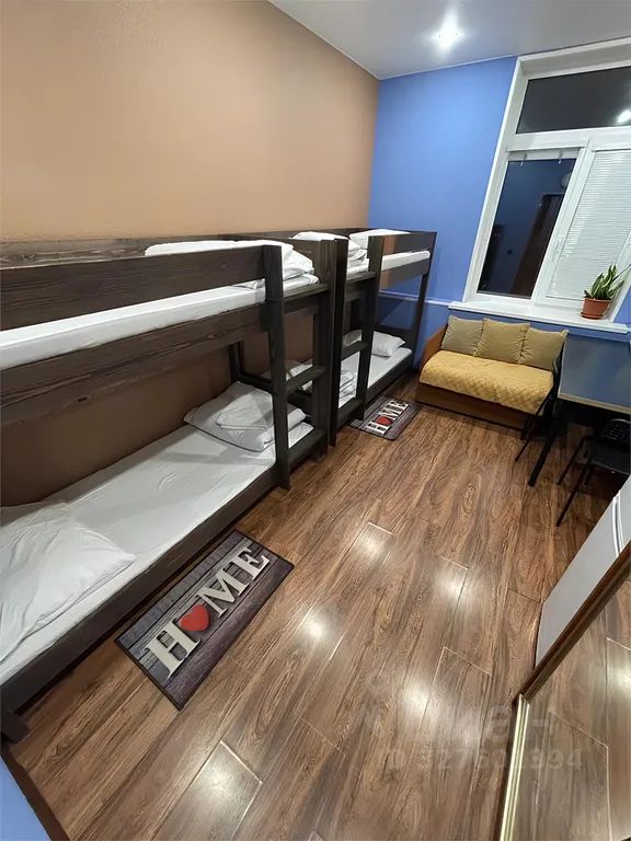Светлая уютная комната, шкаф-купе с зеркалами в пол, 2 двухъярусных кровати, два рабочих стола и стулья, напольная сушилка для мокрых вещей, чистое постельное белье и полотенце, телевизор