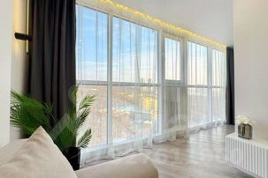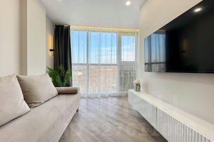 Мы предлагаем вам светлую и уютную квартиру с панорамными окнами недалеко от пляжа, идеально подходящую как для отдыха, так и для деловых поездок