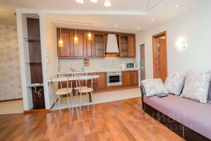 Квартира недавно прошла евроремонт, поэтому все в отличном состоянии. В комнатах и на кухне есть необходимая мебель, а из техники в вашем распоряжении будут кондиционер, холодильник, телевизор, посудомоечная и стиральная машины. Санузел раздельный и оборудован ванной, а в квартире есть просторная лоджия.