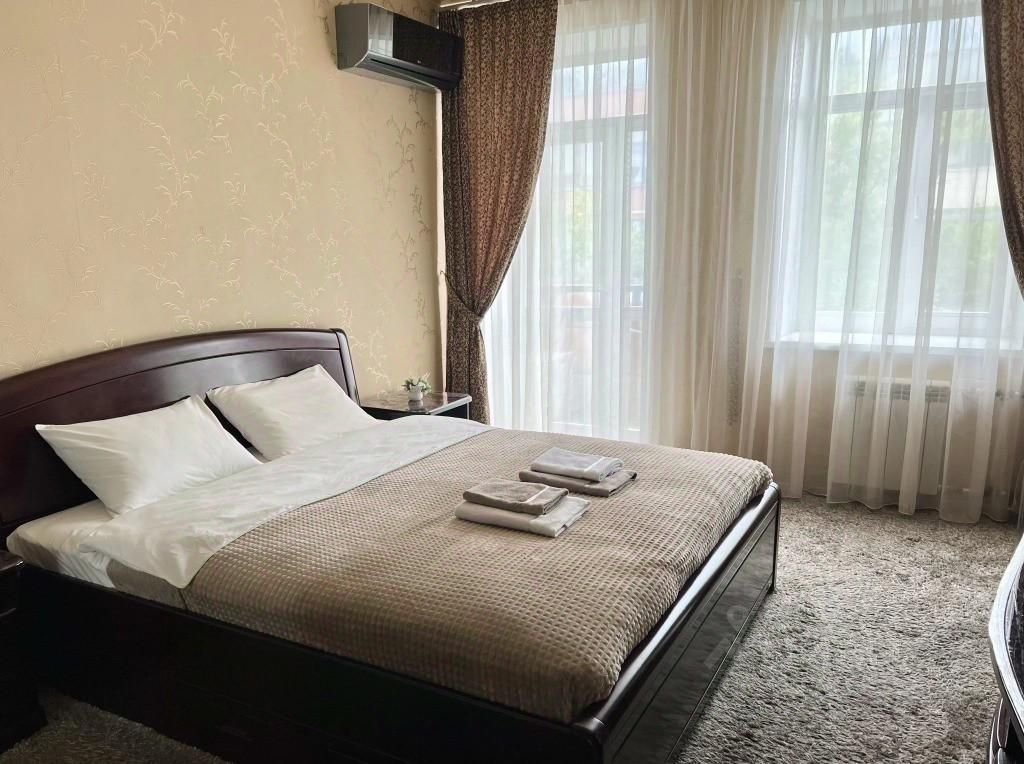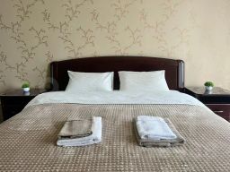 В квартире могут проживать трое взрослых или двое взрослых и двое детей. Имеется два балкона: один с видом на набережную и туристическую улицу, второй — на двор. Гостям доступны: шкафы-купе, спальня с кроватью King Size, кондиционером и телевизором, кухня, укомплектованная необходимой посудой и столовыми приборами.